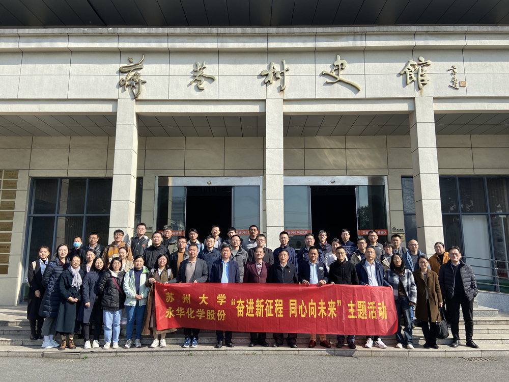 為深入學(xué)習(xí)貫徹黨的二十大精神,弘揚(yáng)“四敢”精神,11月29日,蘇州大學(xué)黨委統(tǒng)戰(zhàn)部黨支部與我司黨支部在常熟市蔣巷村開展“奮進(jìn)新征程 同心向未來”聯(lián)合主題黨日活動(dòng)。蘇州大學(xué)黨委常委、統(tǒng)戰(zhàn)部部長(zhǎng)、支部書記黃志斌,常熟市支塘鎮(zhèn)原副鎮(zhèn)長(zhǎng)、二級(jí)主辦湯煒,常熟市支塘鎮(zhèn)蔣巷村第一書記常德盛,永華化學(xué)股份有限公司總經(jīng)理、支部書記顧學(xué)峰參加活動(dòng)。