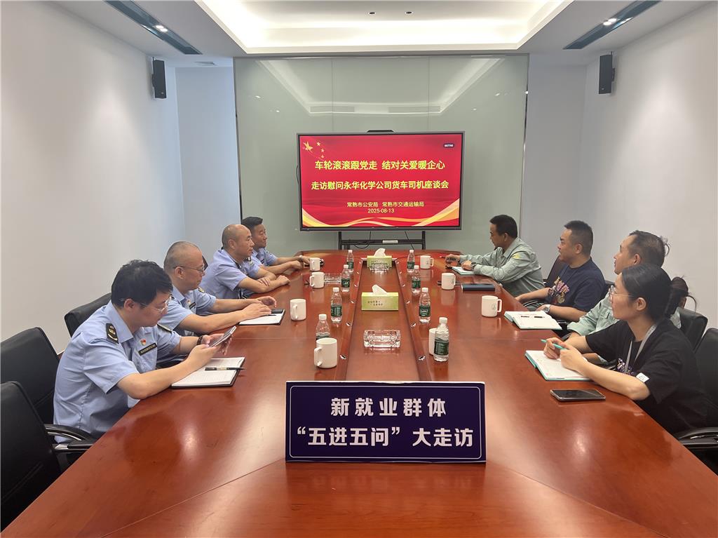 8月13日上午,常熟市公安局交警大隊(duì)教導(dǎo)員戴儉,市公安局車管所民警鄒黎剛,常熟市交通運(yùn)輸綜合行政執(zhí)法大隊(duì)黨委副書記、人事科科長(zhǎng)戴敏及綜合行政執(zhí)法大隊(duì)貨運(yùn)監(jiān)管中隊(duì)中隊(duì)長(zhǎng)楊宇杰一行專程來(lái)到我司開展慰問活動(dòng)。我司支部書記、總經(jīng)理顧學(xué)峰全程陪同接待。