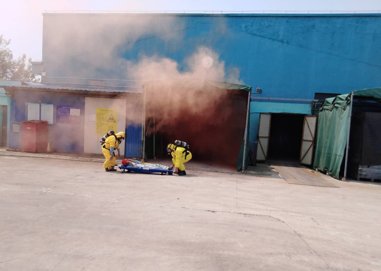 今年六月份是全國第十九個“安全生產(chǎn)月”,為進(jìn)一步加強(qiáng)安全生產(chǎn)宣傳教育,永華組織全體員工于6月30日下午開展了一次綜合應(yīng)急預(yù)案演練。這次演練設(shè)定的事故場景是: 3號倉庫溴素原料罐泄漏后1名巡檢人員現(xiàn)場查看時中毒昏迷,經(jīng)公司先期處置,后經(jīng)各救援組救援,人員得到救治,泄漏得到控制。